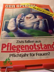 Titel * "Dann machen wir eben dicht": Durch die Verkürzung der Dienstzeit und den Pillenknick wird sich die Zahl der Zivildienstleistenden halbieren. Experten fürchten, daß sich der westdeutsche "Pflegenotstand" binnen kurzem zur "totalen Pflegekatastrophe" verschärft. Politiker erwägen, ein Pflichtjahr für alle jungen Deutschen einzuführen, auch für Frauen. (S. 28) Deutschland * Umstrittene Punkte (S. 16) * Später Anruf (S. 16) * Berghofer - Berghofer vor Gericht (S. 16) * Vorstellungsgespräch im Osten (S. 16) * Honecker - Verantwortung abgelehnt (S. 17) * SPD - Den Elefanten stoppen?: Bei den Sozialdemokraten ist Ernüchterung eingekehrt. Sie werden mit ihren Wahlkampfthemen Steuern und Ökologie kaum zur Kenntnis genommen; Kohl und die Einheit dominieren. Zugleich mehren sich Anzeichen für eine Kooperation mit der Union. Und auch über Große Koalitionen in Ländern und Bund wird nachgedacht. (S. 18) &nb...