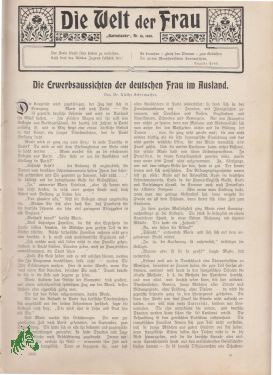DIE ERWERBSAUSSICHTEN DER DEUTSCHEN FRAU IM AUSLAND VON DR KÄTHE SCHIRMACHER;