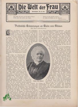 PERSÖNLICHE ERINNERUNGEN AN CLAIRE VON GLÜMER BERICHT MIT ABBILDUNGEN VON KLARA SCHNACKENBURG;